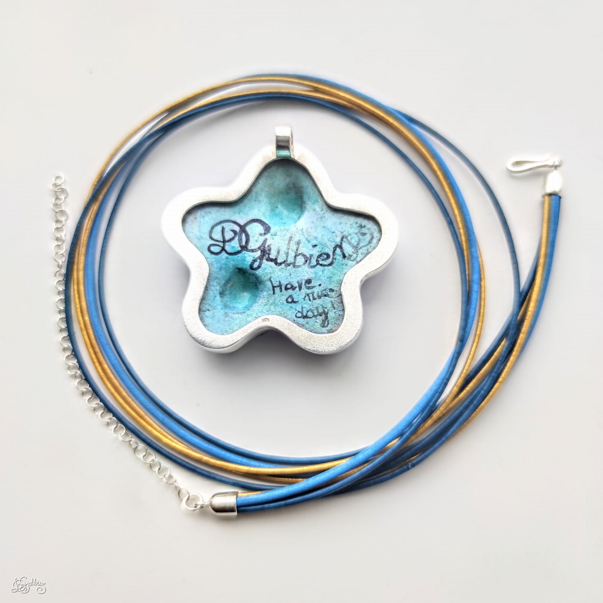 - użyte materiały: srebro 925, ceramika złocona, skóra (rzemień),